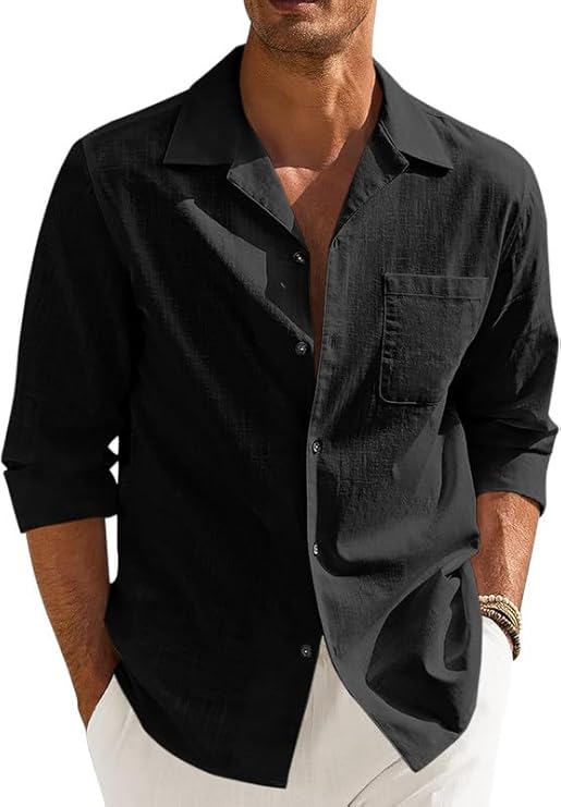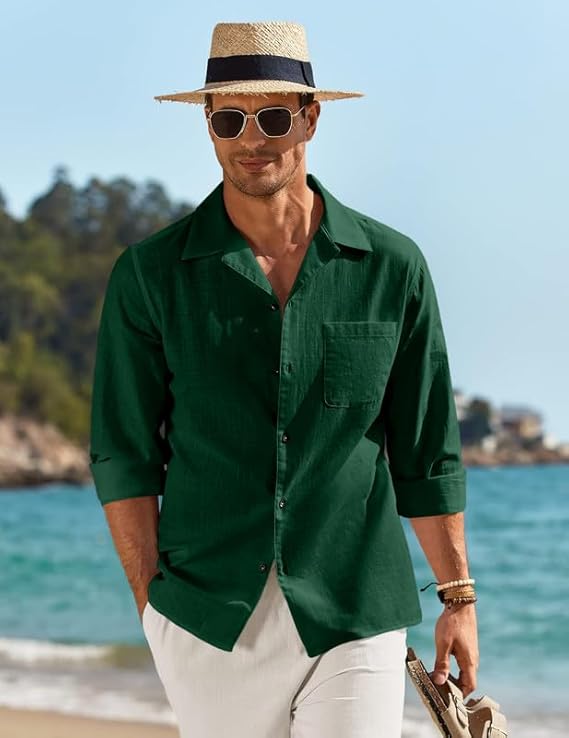 Men’s Casual Cotton Blend Shirt || Long Sleeve Button Down with Spread Collar || Lightweight Breathable Fabric || Stylish Solid Color Shirt for Beach, Office & Everyday